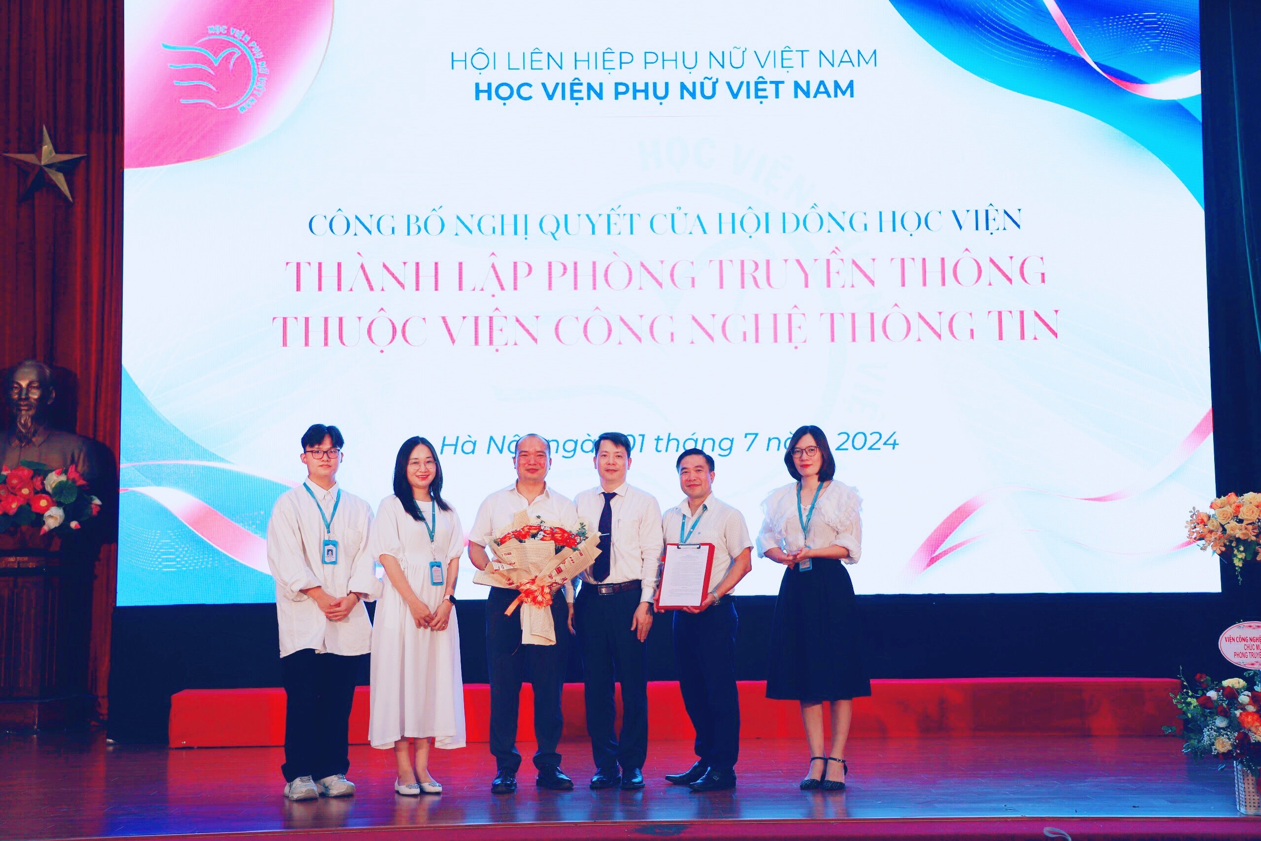 Cũng trong dịp này, Hội đồng Học viện Phụ nữ Việt Nam cũng Công bố Nghị quyết thành lập Khoa Kinh tế và Tài chính và Nghị quyết thành lập Phòng Truyền thông, Viện CNTT.