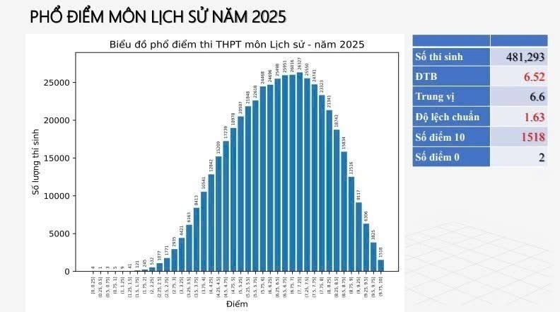 Đây là lần đầu tiên phổ điểm được công bố trước ngày tra cứu điểm thi chính thức, giúp thí sinh, phụ huynh và nhà trường có cái nhìn sớm về độ phân hóa đề thi và định hướng đăng ký nguyện vọng hiệu quả.