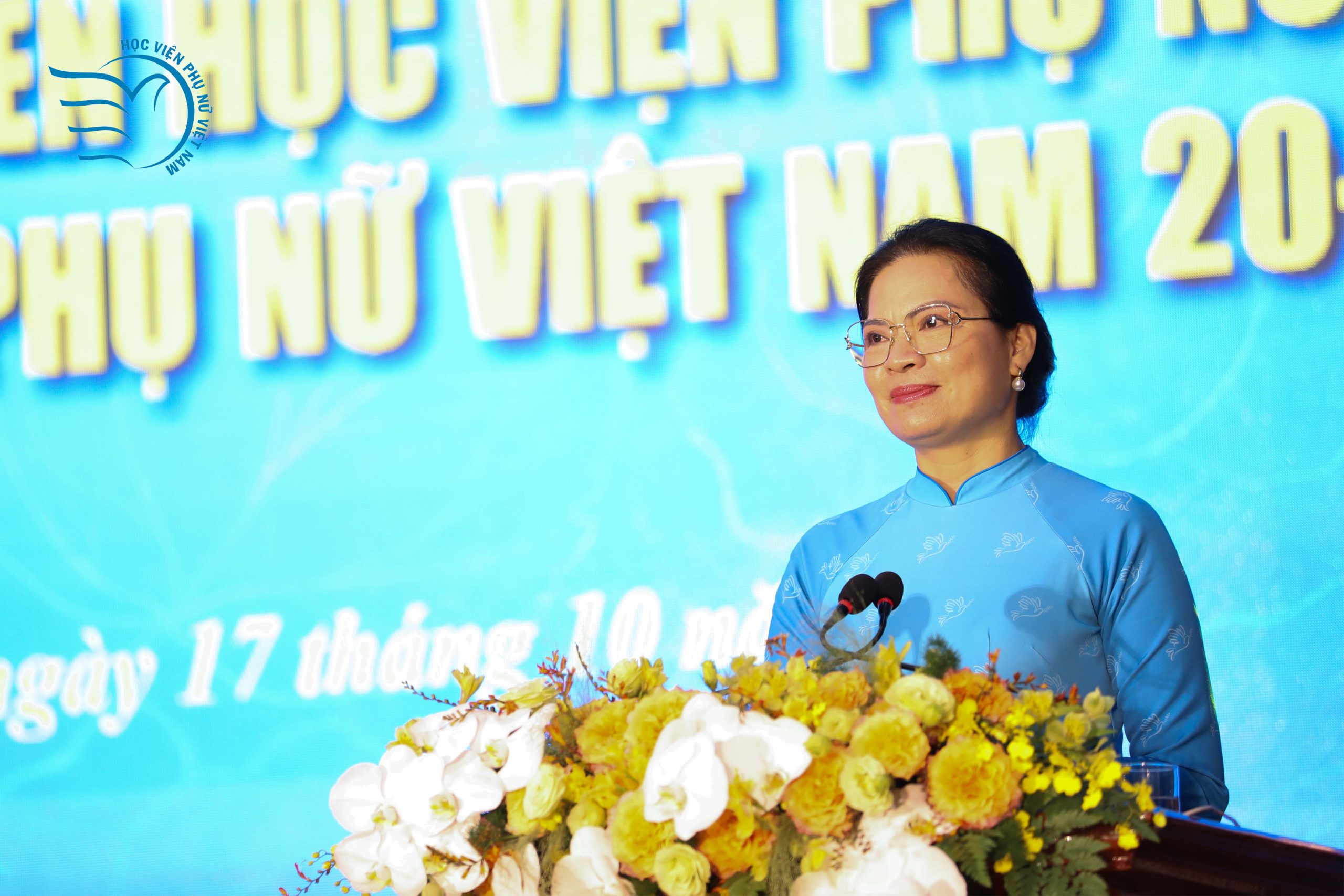 Đồng chí Hà Thị Nga – Ủy viên Ban Chấp hành Trung ương Đảng Cộng sản Việt Nam khóa XIII, Bí thư Đảng đoàn Trung ương Hội Liên hiệp Phụ nữ Việt Nam, Chủ tịch Hội Liên hiệp Phụ nữ Việt Nam phát biểu tại sự kiện