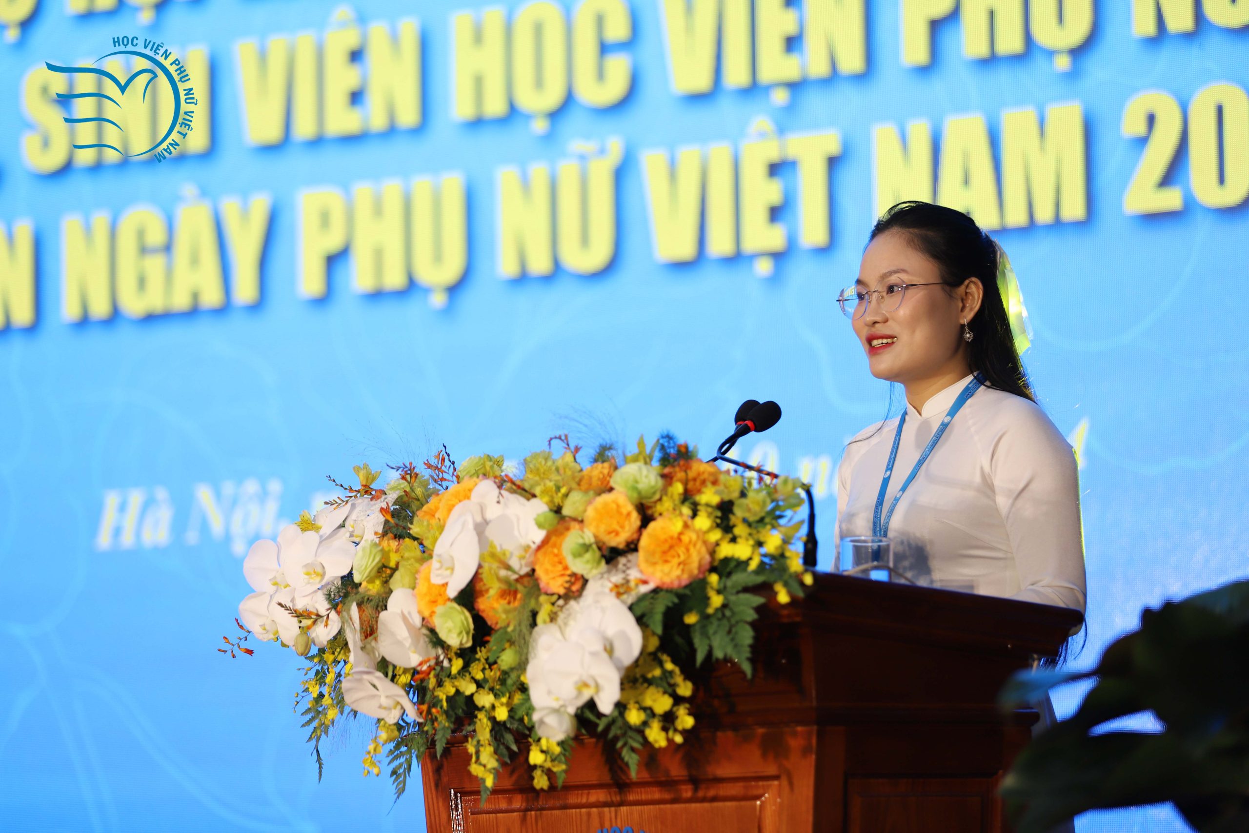 Em Bùi Hoàng Ngọc Anh – Sinh viên ngành Tâm lý học đại diện sinh viên Học viện phát biểu
