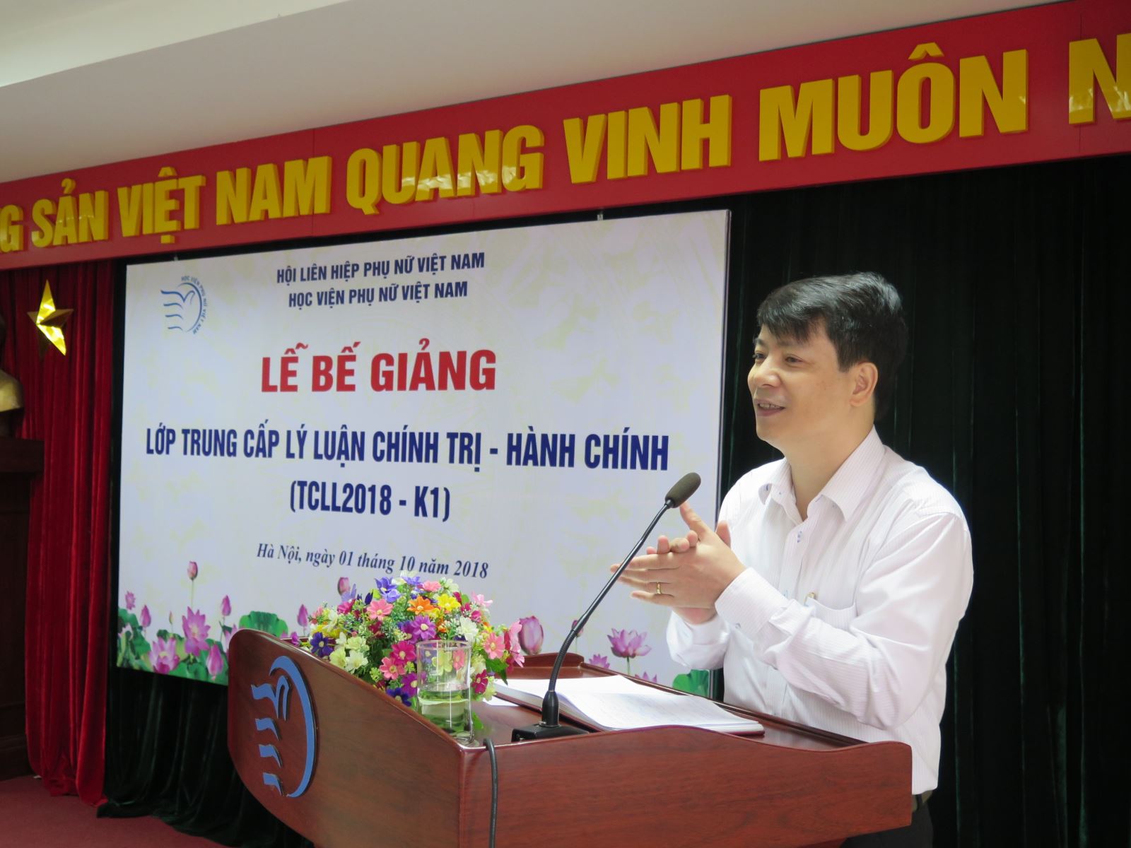 Phát biểu tại lễ bế giảng, TS.Trần Quang Tiến đã đánh giá cao sự nỗ lực của từng học viên trong học tập và sự tâm huyết của đội ngũ giảng viên đã góp phần tạo nên kết quả của lớp học. Đồng thời, tin tưởng sau khi kết thúc khóa học từng học viên sẽ đem kiến thức tiếp thu tại lớp học để vận dụng vào thực tiễn công tác tại đơn vị mình đạt hiệu quả.