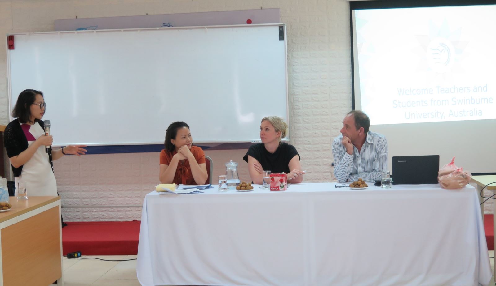 Tại buổi trao đổi, các giảng viên và sinh viên của Học viện đã chia sẻ thông tin về nội dung, phương pháp giảng dạy liên quan đến Bạo lực gia đình và giới cũng như thảo luận về những khó khăn vướng mắc trong công tác chuyên môn với các đồng nghiệp tại Đại học Swinburne. Sinh viên của Học viện cũng thể hiện sự tự tin khi tham gia trao đổi bằng tiếng Anh trong buổi tọa đàm, đồng thời nhiệt tình giới thiệu với các bạn sinh viên Úc những món ăn truyền thống của Việt Nam trong bữa trưa sau buổi tọa đàm.