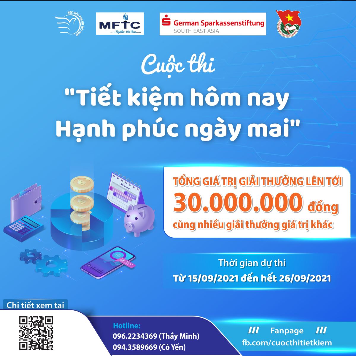 Năm 2021, Học viện tiếp tục hợp tác với Dự án Hợp tác quốc tế các Ngân hàng tiết kiệm Đức – DSIK tổ chức cuộc thi “Tiết kiệm hôm nay – Hạnh phúc ngày mai” với nhiều nội dung phù hợp, thực tiễn, hứa hẹn sẽ là sân chơi hấp dẫn cho các bạn sinh viên.