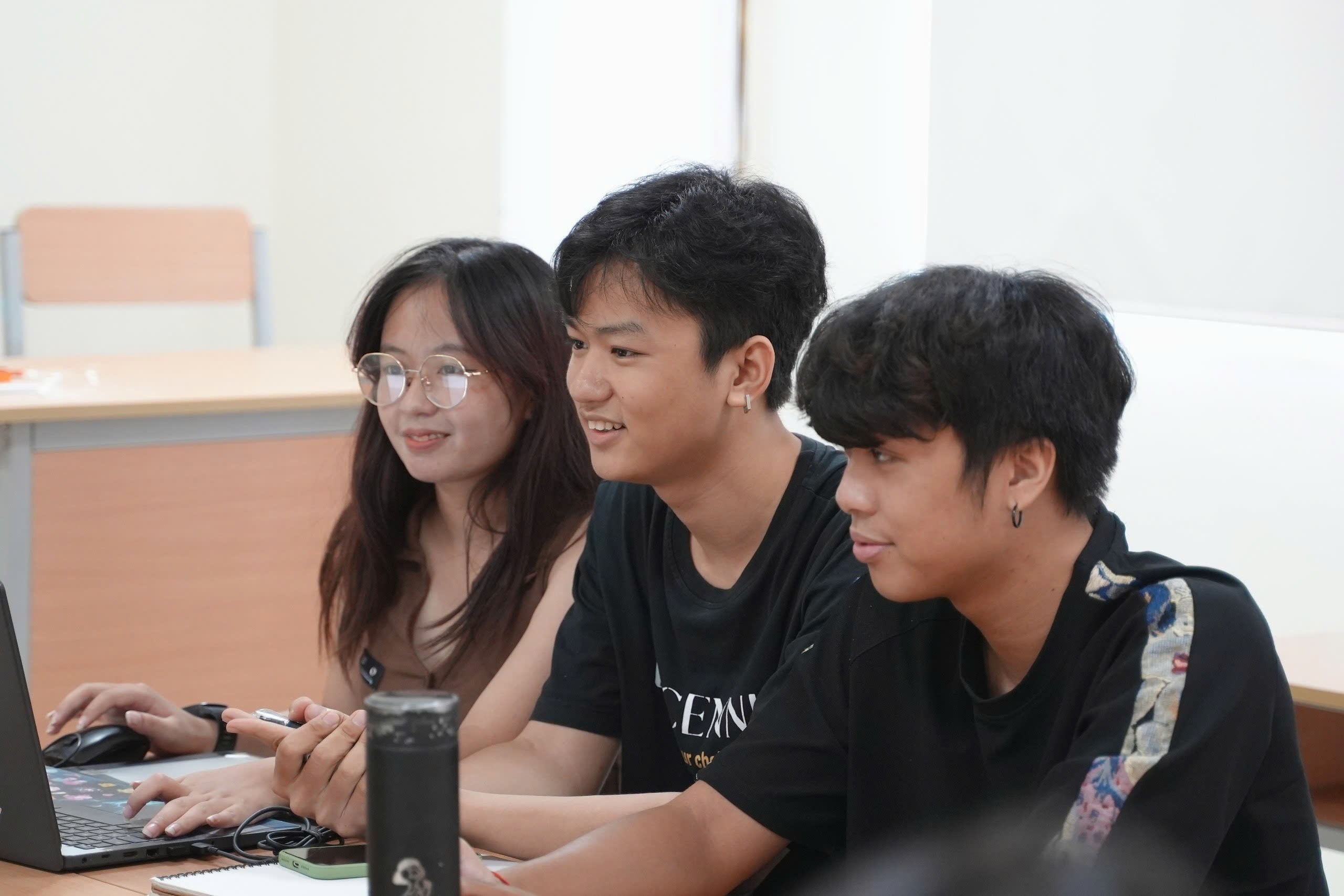 Việt Nhật (giữa) trong buổi tuyển thành viên CLB Mỹ thuật đa phương tiện