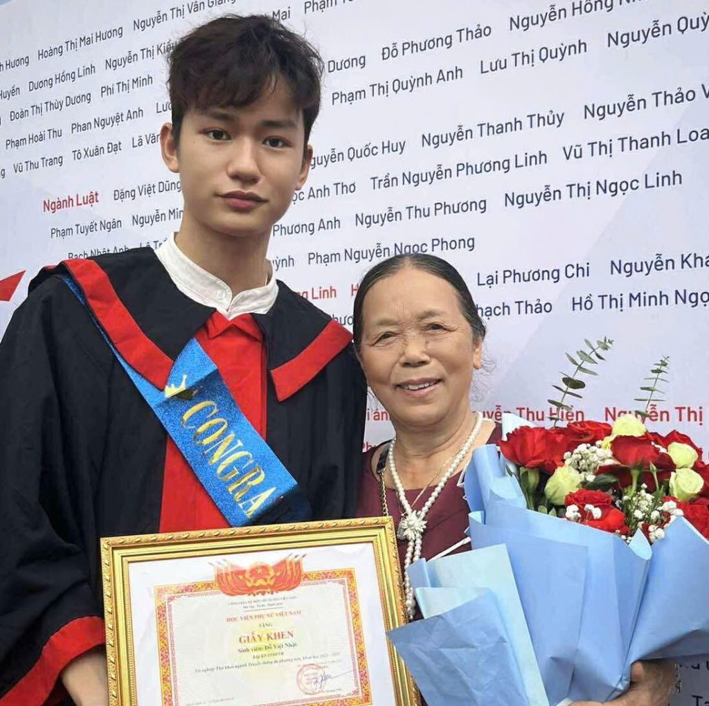 Việt Nhật (bên trái) và bà trong lễ tốt nghiệp