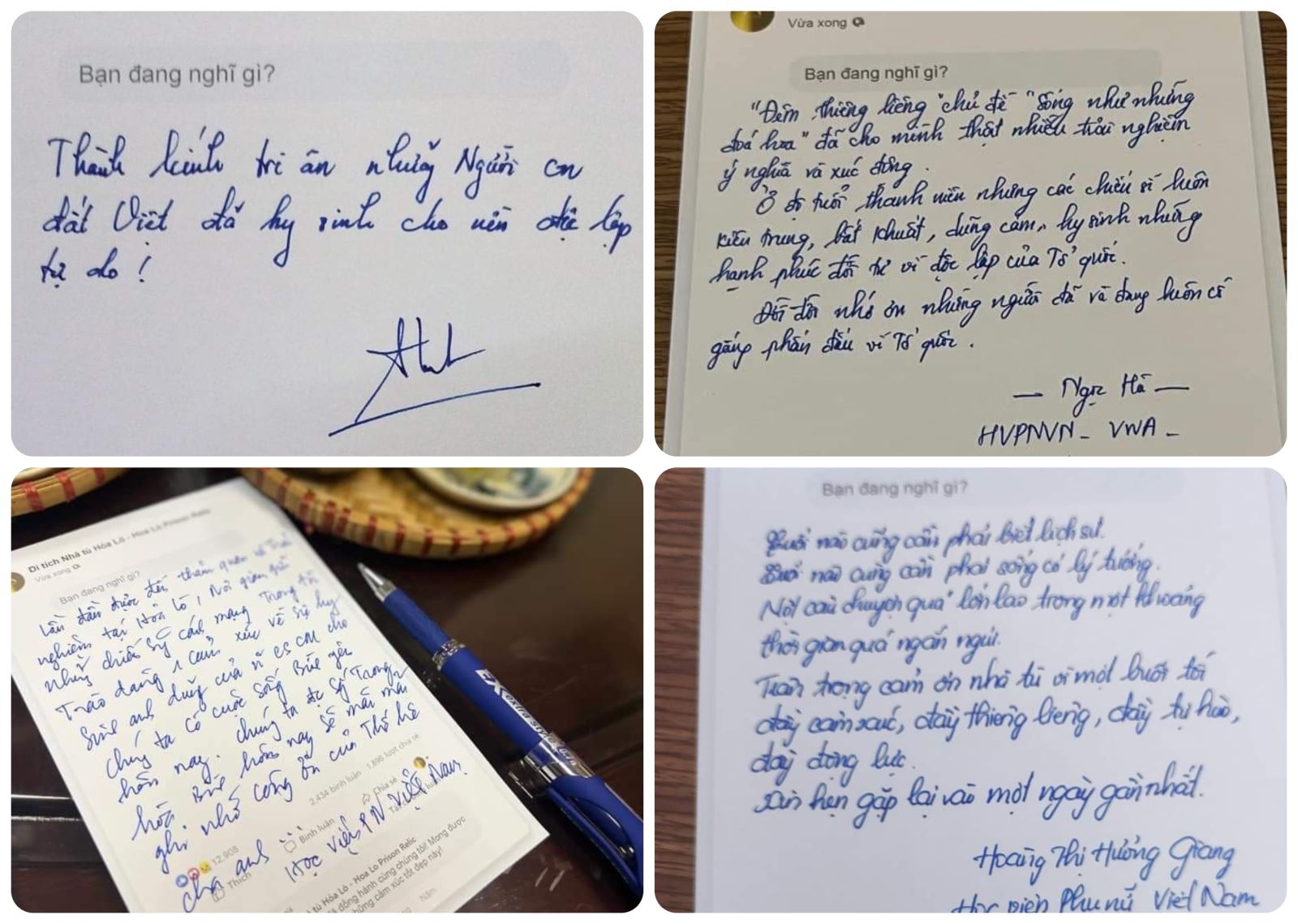 Những cảm xúc không thể ghi hết bằng lời nói, câu từ nhưng mỗi thành viên của đoàn đều tranh thủ ghi lại dòng tâm trạng sau khi có một hành trình trải nghiệm lịch sử đáng nhớ.