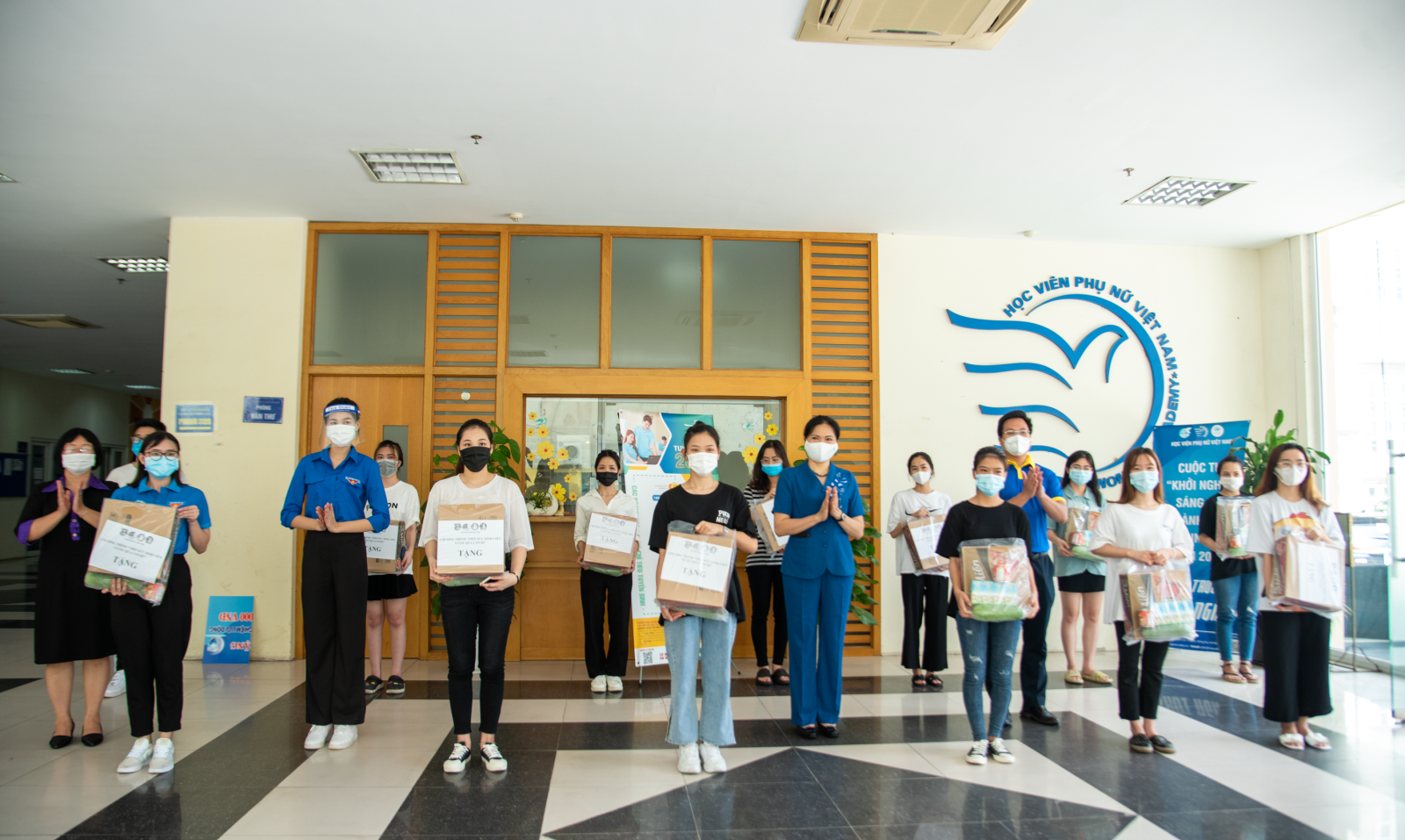 Không chỉ vậy, dưới sự chỉ đạo của Đảng ủy, Ban Giám đốc Học viện và Đoàn cấp trên cùng với đó là sự quan tâm kịp thời từ phía Lãnh đạo Hội LHPN Việt Nam, Ban lãnh đạo Thành Đoàn và Hội Sinh viên Thành phố Hà Nội, Đoàn Thanh niên Học viện Phụ nữ Việt Nam đã hỗ trợ quà hiện vật và tiền mặt 100.000 – 200.000/sinh viên cho gần 300 sinh viên hiện đang ở lại ký túc xá và sinh viên ngoại tỉnh đang ở trọ không thể về quê trong thời gian thực hiện giãn cách xã hội. Đồng hành cùng sinh viên trong mùa dịch là hoạt động được Học viện phối hợp với các tổ chức, mạnh thường quân duy trì trong suốt thời gian diễn ra dịch bệnh covid.