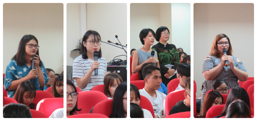 Ngay sau phần chia sẻ của ngài Keith Conway về bình đẳng giới và cuộc thi, rất nhiều sinh viên của Học viện Phụ nữ Việt Nam đã tự tin trao đổi bằng tiếng Anh với ngài Phó đại sứ về các hoạt động thúc đẩy bình đẳng giới tại New Zealand, tại Việt Nam và trên thế giới. Đặc biệt, các bạn tỏ ra rất hào hứng với cuộc thi “Đàm đạo cùng Helen Clark” – Sáng tạo slogan c��� vũ tinh thần phụ nữ lãnh đạo. Những tiêu chí để đạt giải thưởng cũng như những ý nghĩa mà cuộc thi mang lại đều được các bạn trao đổi và chia sẻ để có những thông tin cụ thể nhất trong quá trình tham gia cuộc thi.