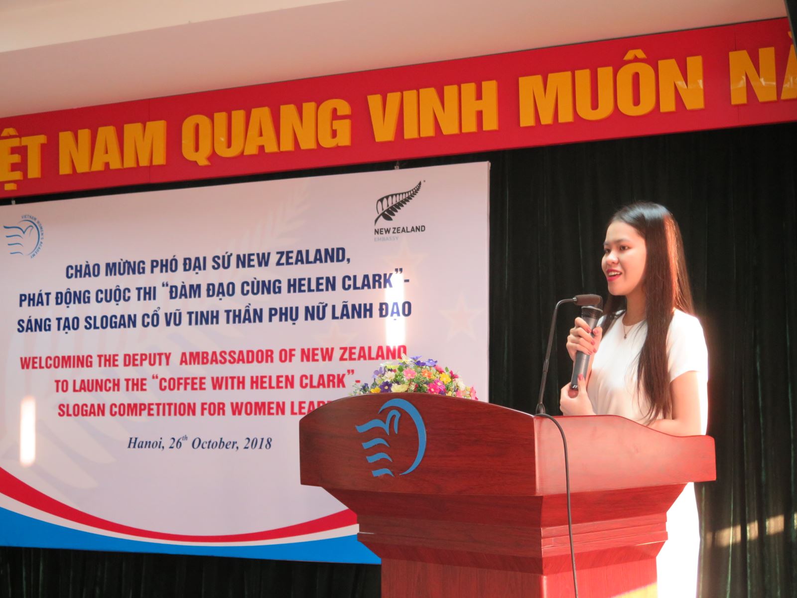 Phát biểu khai mạc sự kiện, Phó Giám đốc Dương Kim Anh cho biết: “New Zealand có mức tiến bộ bình đẳng giới và phát triển con người rất cao. Nhiều năm liền, New Zealand nằm trong Top 10 các nước có nỗ lực tốt nhất trong thu hẹp Khoảng cách giới (GII), Top 10 các nước có Chỉ số phát triển con người (HDI) cao nhất. Là học viện đi đầu về đào tạo các ngành học thúc đẩy bình đẳng giới và phát triển bền vững, Học viện Phụ nữ Việt Nam hân hạnh được đón ngài Phó Đại sứ Keith Conway và cán bộ truyền thông Đại sứ quán New Zealand tại Việt Nam tới thăm Học viện, giới thiệu về bình đẳng giới ở New Zealand và chia sẻ thông tin về Cuộc thi “Đàm đạo cùng Helen Clark” – Sáng tạo slogan cổ vũ tinh thần phụ nữ lãnh đạo nhân dịp nguyên thủ tướng New Zealand – bà Helen Clark tới thăm Việt Nam vào đầu tháng 11/2018. Đề nghị sinh viên Học viện Phụ nữ Việt Nam nhiệt liệt hưởng ứng cuộc thi và sáng tạo được nhiều thông điệp truyền thông có ý nghĩa”.