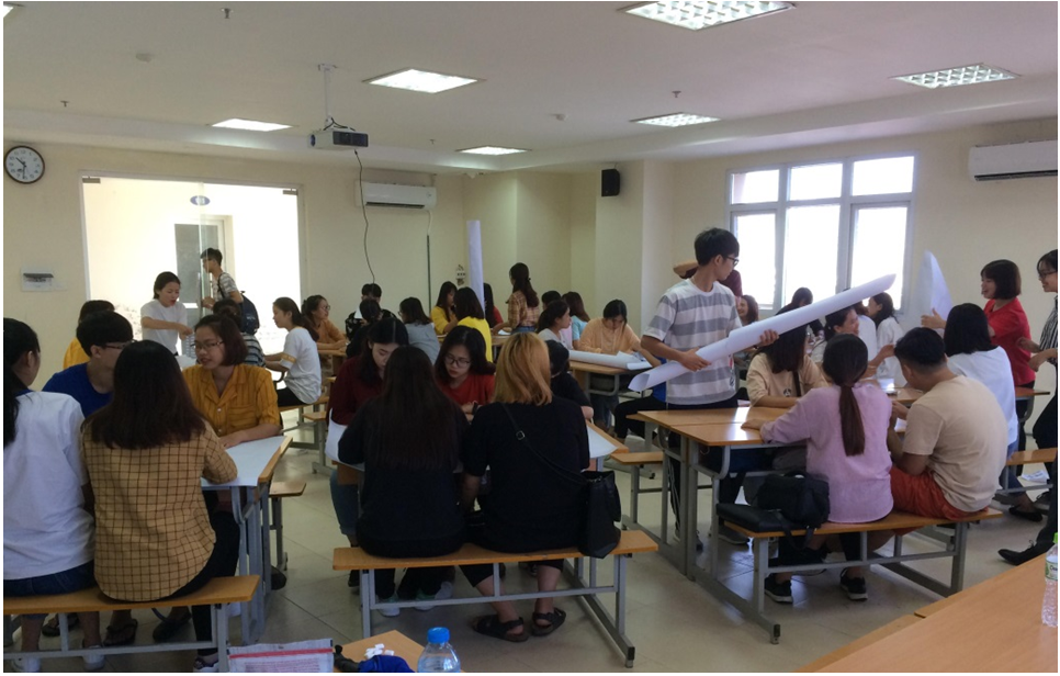 Một lớp dạy kĩ năng mềm và hoạt động “Xây tòa tháp giấy”