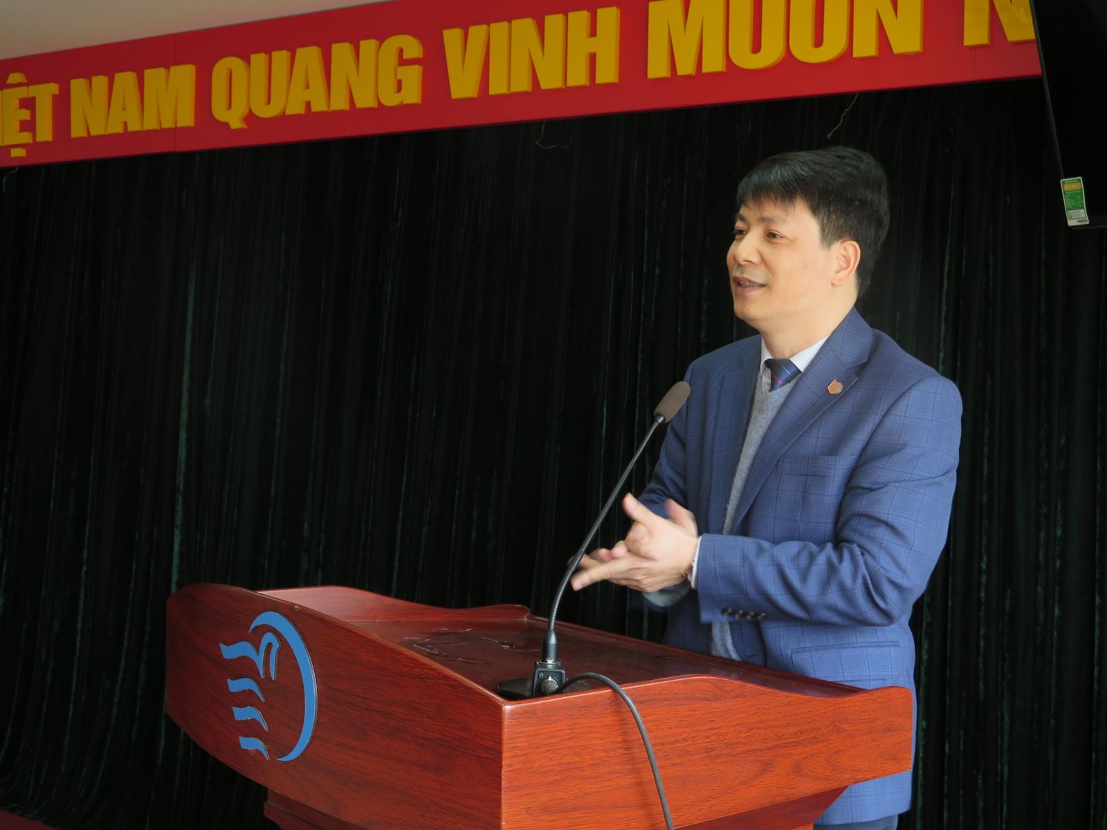 Thay mặt Đảng ủy, Ban Giám đốc, PGS,TS. Trần Quang Tiến gửi lời chúc mừng năm mới, chúc sức khỏe, may mắn, thành công tới toàn thể cán bộ, viên chức Học viện và các thành viên gia đình, đồng thời nhắc lại những thành tựu nổi bật, ghi nhận và đánh giá những nỗ lực cố gắng của tập thể, cá nhân trong năm 2019, gửi gắm thông điệp, mong muốn tập thể công chức, viên chức, người lao động năm 2020 tiếp tục phấn đấu vì một Học viện đoàn kết và vững mạnh, hoàn thành xuất sắc mọi nhiệm vụ theo kế hoạch.