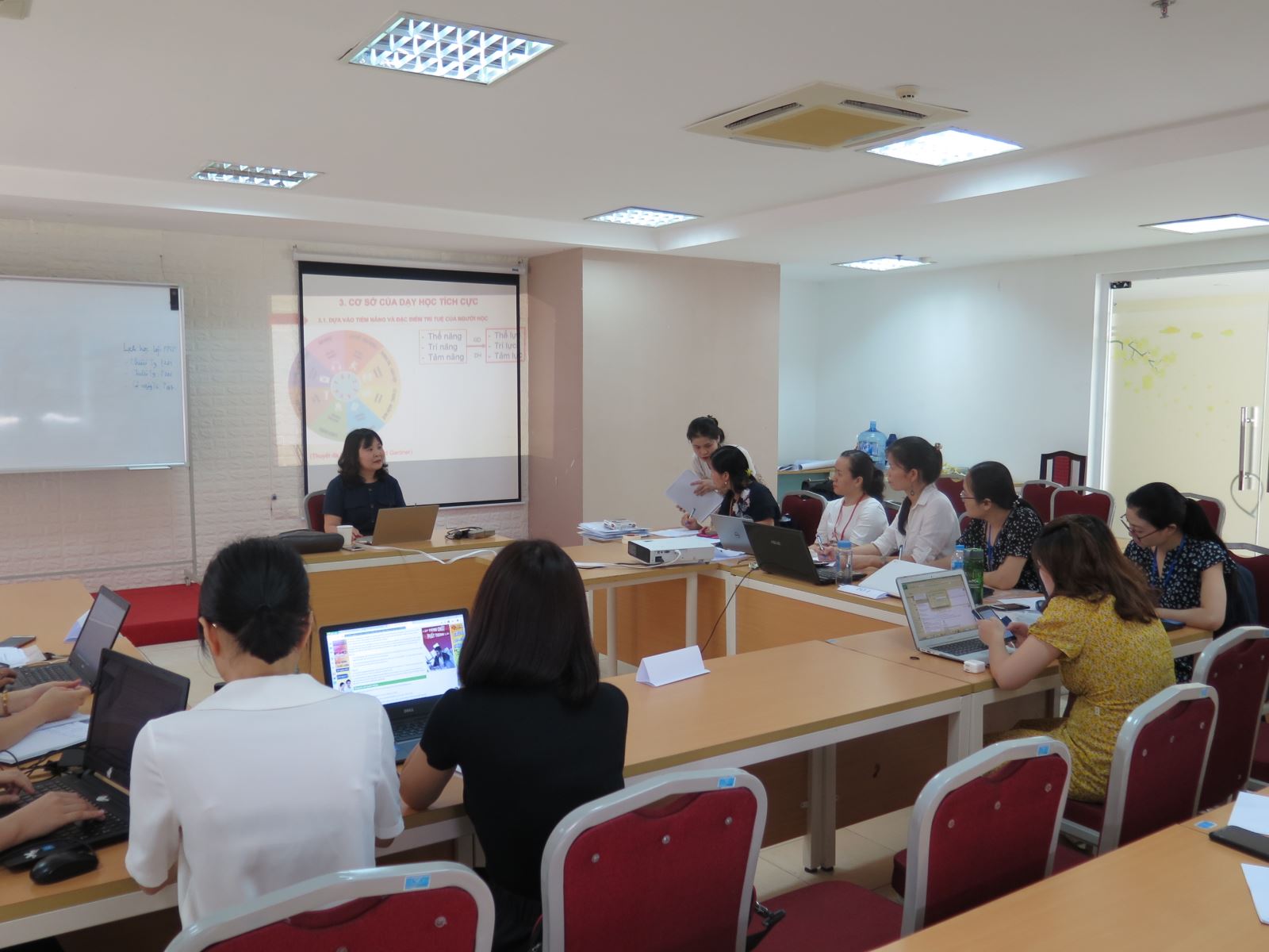 Tham gia khóa học, các học viên đã tích cực trao đổi, chia sẻ, làm việc nhóm và thực hành giảng dạy, thuyết trình từng mảng kiến thức do giảng viên yêu cầu. Ngoài ra, các học viên cũng tận dụng cơ hội tham gia khóa học để bày tỏ những ý kiến cá nhân gặp phải trong quá trình giảng dạy và xin ý kiến giảng viên về phương án xử lý theo hướng dạy học tích cực.
