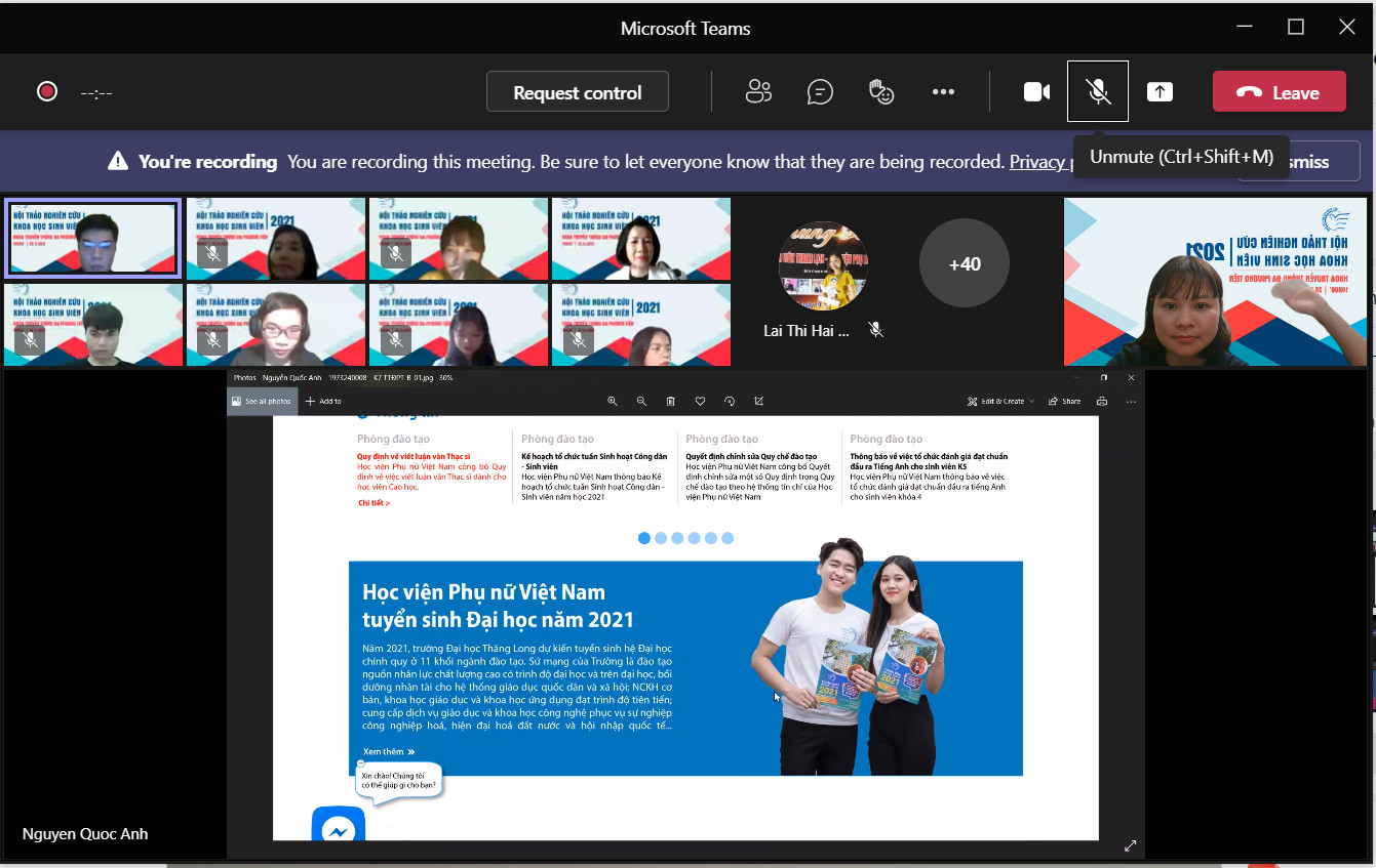 Hội thảo tuy được tổ chức bằng hình thức trực tuyến nhưng đã thu hút được sự tham gia của giảng viên và sinh viên các khóa K6,K7, K8, K9 của Khoa.