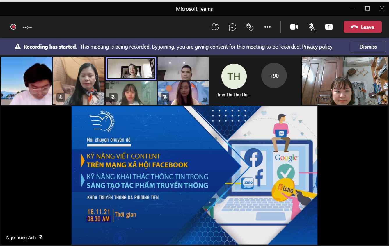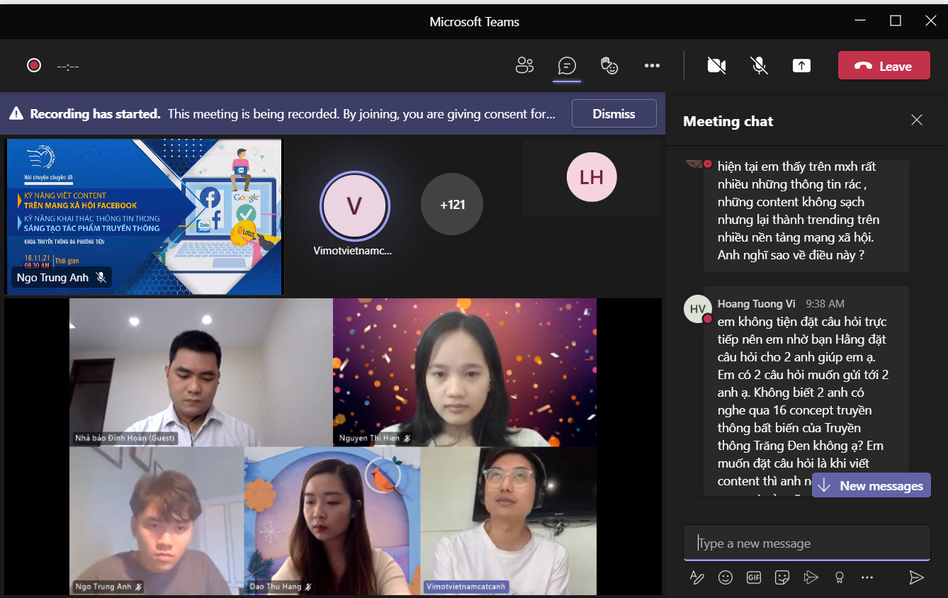 Buổi nói chuyện chuyên đề được tổ chức bằng hình thức trực tuyến với sự tham gia của hai diễn là nhà báo Đình Hoàn – Kênh VTC14 – Đài Truyền hình kỹ thuật số VTC và biên tập viên Thế Hùng – Ban Thanh thiếu niên Đài truyền hình Việt Nam đã thu hút được sự quan tâm của giảng viên, sinh viên các khóa của Khoa Truyền thông đa phương tiện – Học viện Phụ nữ Việt Nam