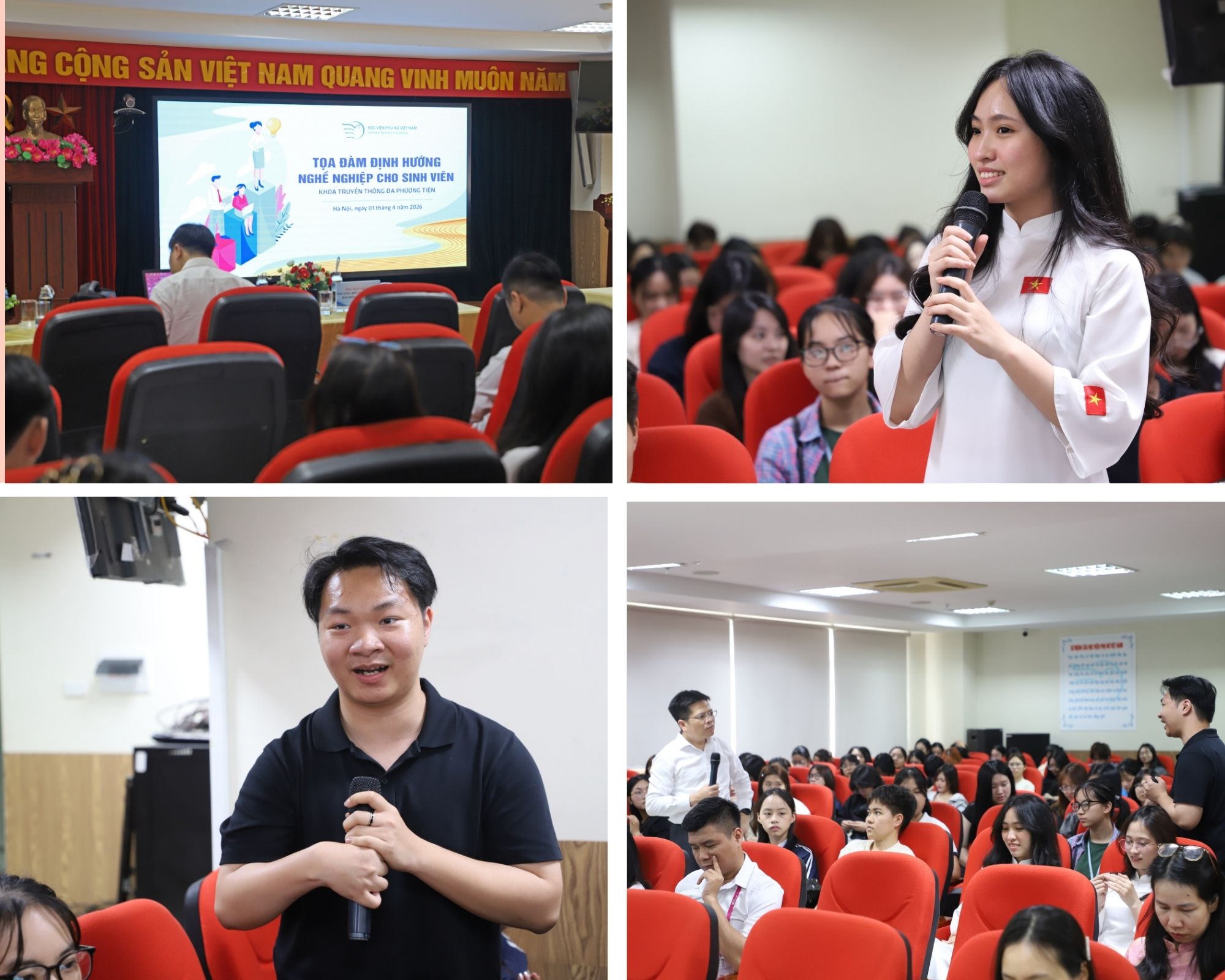 Cũng trong khuôn khổ chương trình, sinh viên còn được tham gia tọa đàm định hướng nghề nghiệp với chủ đề “Nghề truyền thông trong kỷ nguyên AI: Sinh viên cần chuẩn bị gì cho thị trường việc làm?” do ông Ngô Văn Hải chia sẻ. Tại đây, diễn giả đã chỉ ra những thay đổi mạnh mẽ của ngành truyền thông dưới tác động của công nghệ, đặc biệt là sự phát triển của trí tuệ nhân tạo, từ đó đặt ra yêu cầu mới đối với nguồn nhân lực trẻ. Bên cạnh kiến thức chuyên môn, sinh viên cần chủ động rèn luyện tư duy phản biện, khả năng sáng tạo, thích ứng nhanh với công nghệ và xây dựng bản sắc cá nhân trong môi trường truyền thông số.