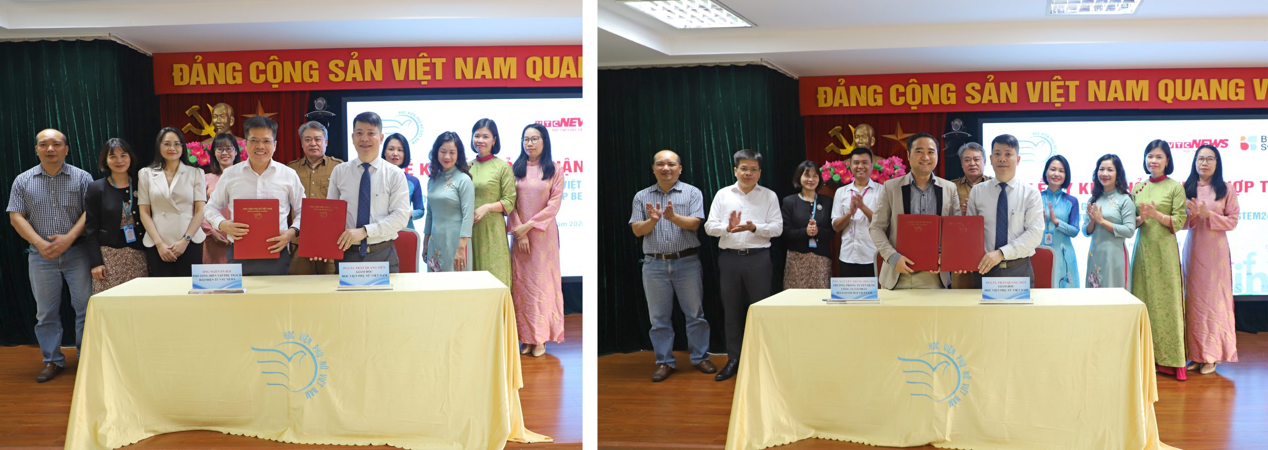 PGS.TS Trần Quang Tiến, Giám đốc Học viện Phụ nữ Việt Nam ký kết thỏa thuận hợp tác với Báo điện tử VTC News và Công ty Cổ phần Bellsystem24 Vietnam