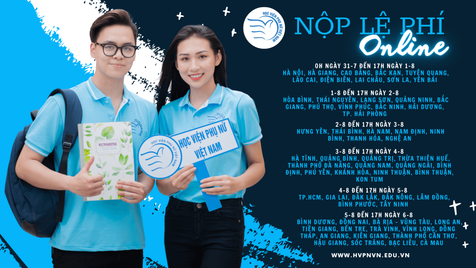 Năm 2023, Học viện Phụ nữ Việt Nam xét tuyển 1.515 chỉ tiêu cho 10 ngành đào tạo đại học chính quy: Ngành Quản trị kinh doanh; Luật; Luật kinh tế; Công nghệ thông tin; Công tác xã hội; Giới và phát triển; Quản trị Dịch vụ Du lịch và lữ hành; Truyền thông đa phương tiện; Kinh tế; Tâm lý học. Cảm ơn các thí sinh đã lựa chọn HPN là nguyện vọng đăng ký xét tuyển, các bạn lưu ý theo dõi lịch thanh toán để đảm bảo thanh toán đúng thời gian quy định dành cho khu vực xét tuyển của mình. Học viện Phụ nữ Việt Nam sẵn sàng lắng nghe, hỗ trợ các thí sinh thực hiện các thao tác nộp lệ phí trực tuyến để hoàn tất công đoạn cuối cùng của việc đăng ký xét tuyển đại học năm 2023.