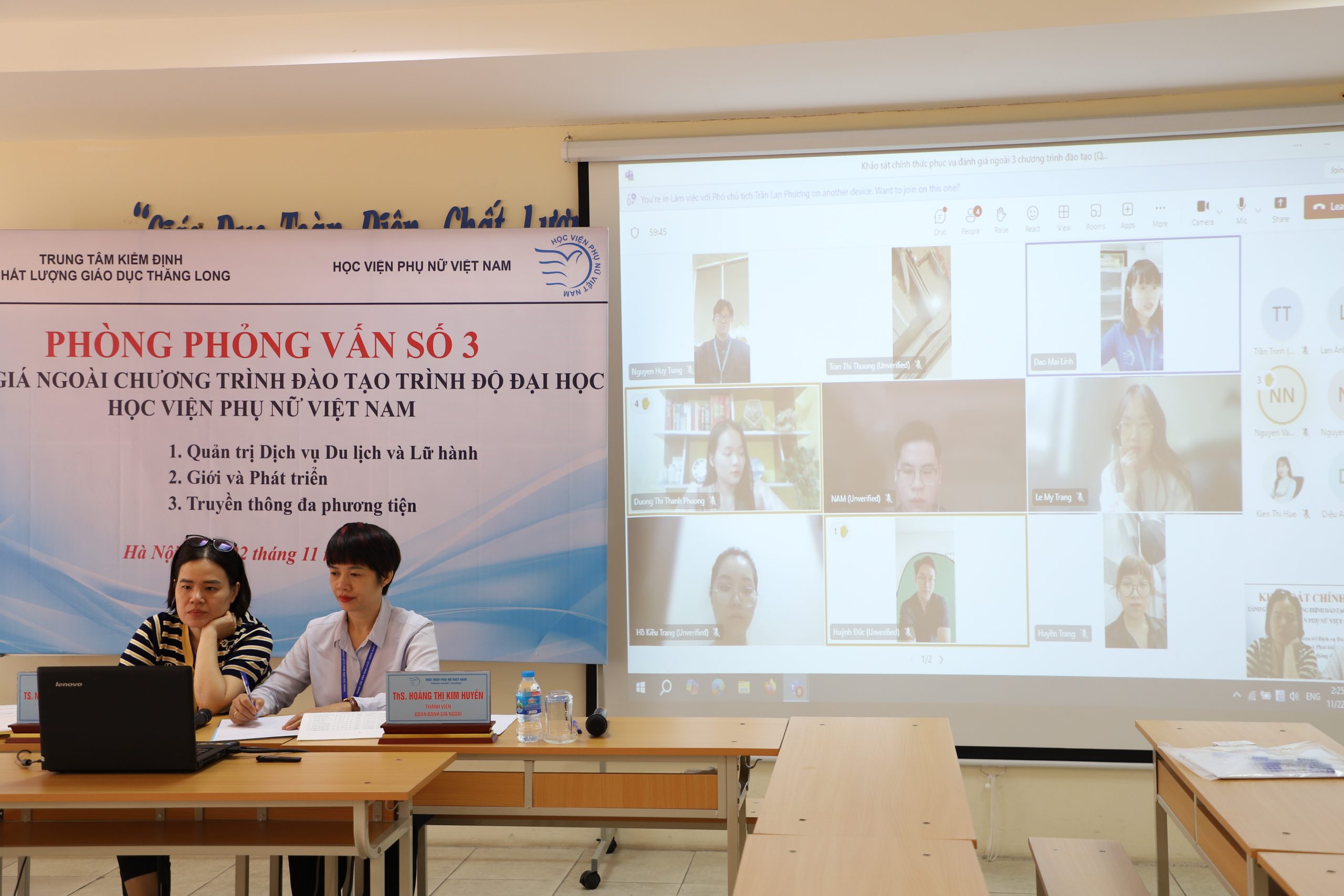 Thành viên đoàn khảo sát đánh giá ngoài phỏng vấn trực tuyến cựu sinh viên ngành Truyền thông ĐPT