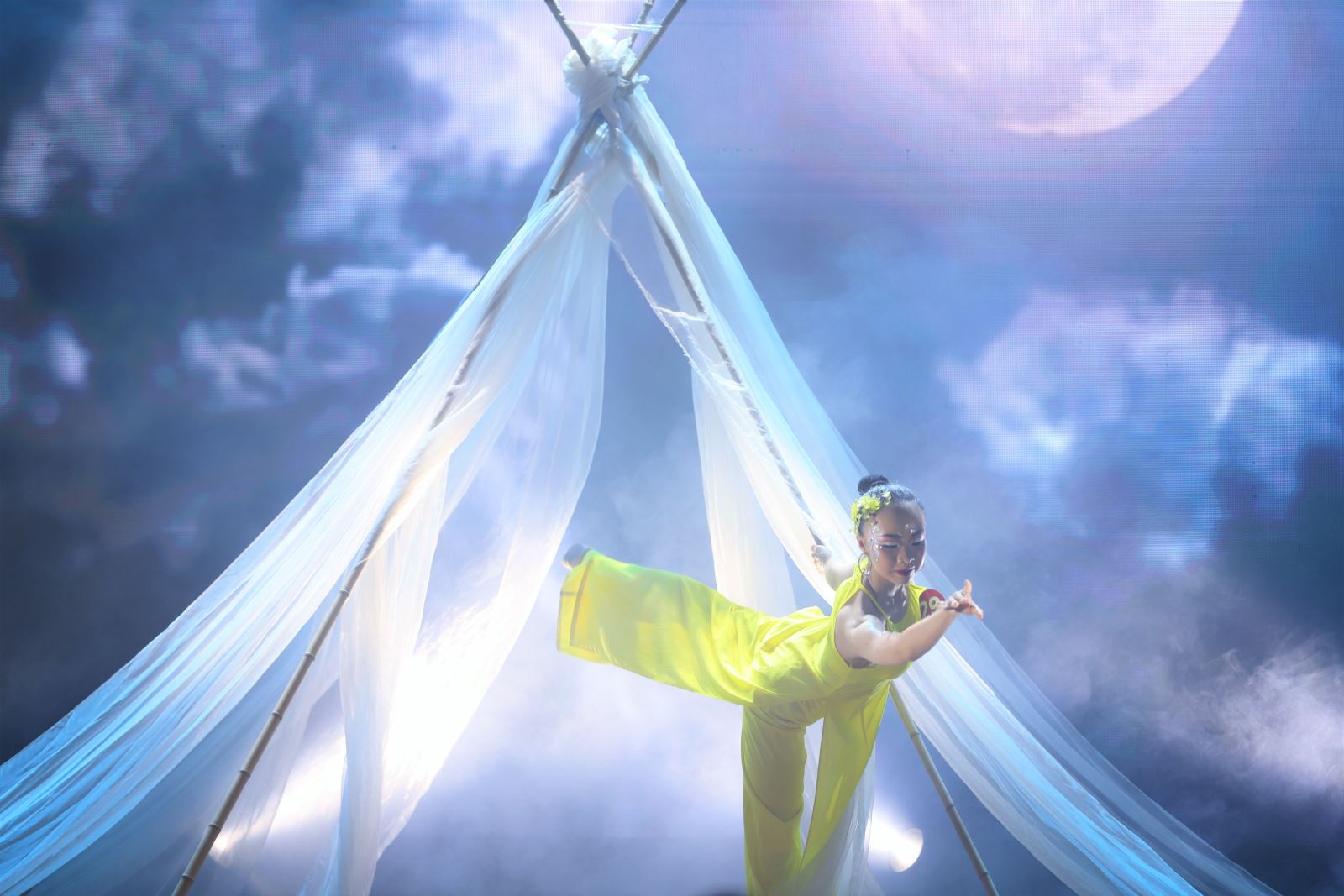 NGUYỄN HOÀNG MY – SBD 29 thể hiện tiết mục múa “Tát nước đêm trăng” ảo diệu, mơ màng với kỹ thuật múa điêu luyện, phong thái tự tin chiếm lĩnh sân khấu