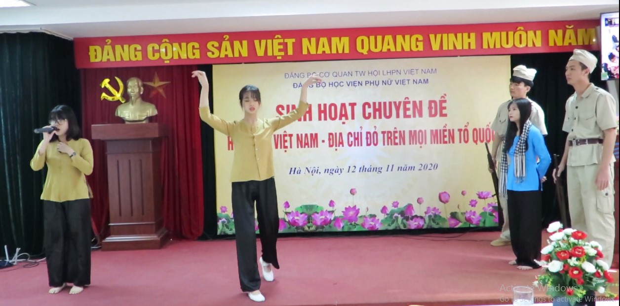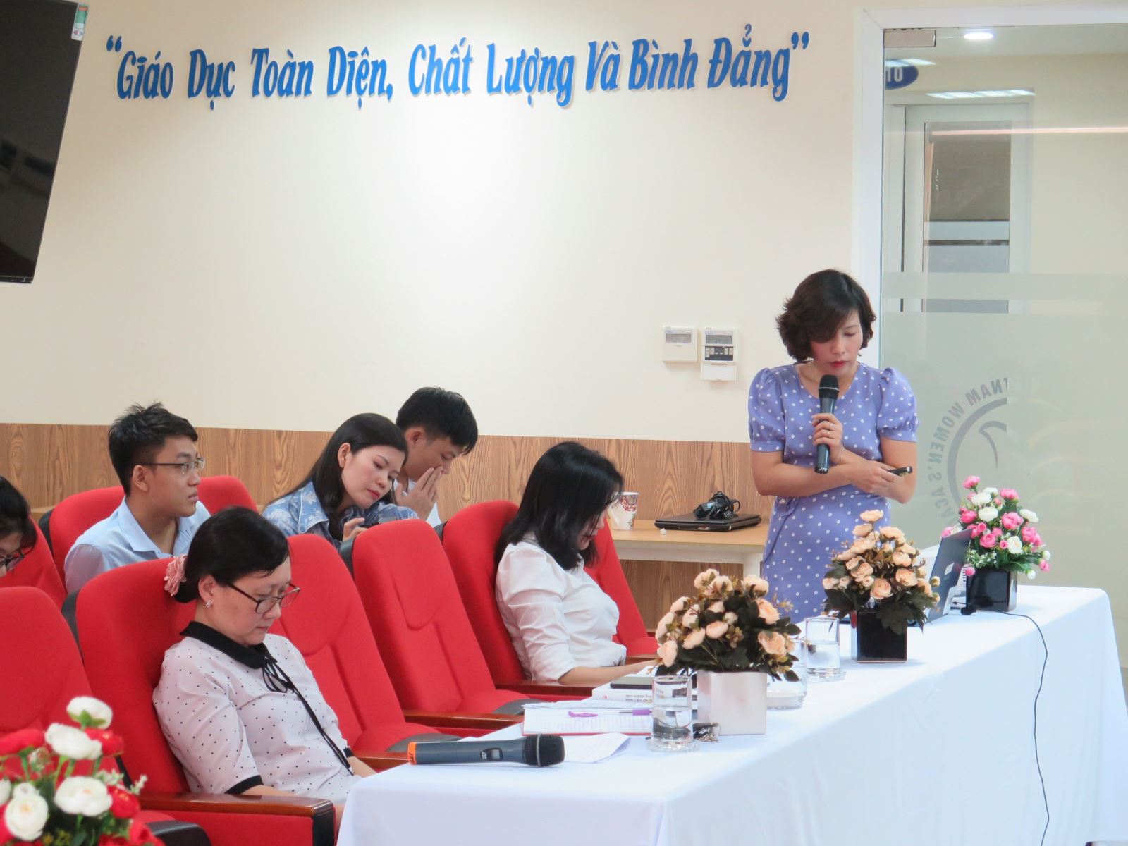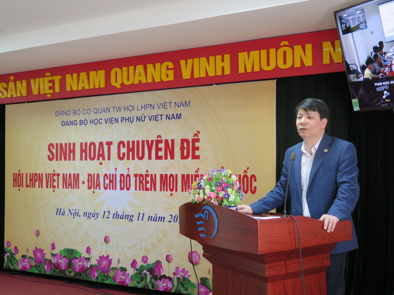 Đồng chí Nguyễn Phi Long – Phó Bí thư Đảng bộ Học viện Phụ nữ Việt Nam khái quát nội dung tuyên truyền, nâng cao nhận thức và hiểu biết của cán bộ đảng viên, quần chúng về các khu di tích lịch sử – nơi ra đời, phát triển và trưởng thành của Hội Liên hiệp Phụ nữ Việt Nam