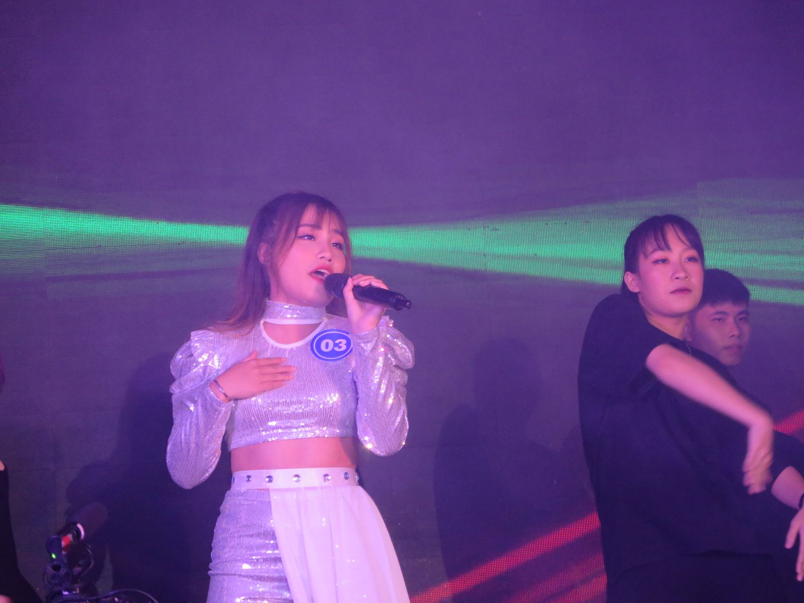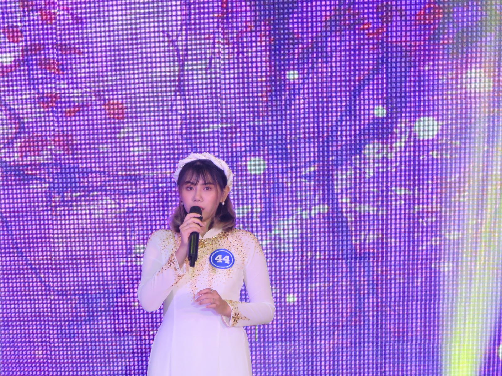 Hồng Thắm (K5 Truyền thông đa phương tiện) thể hiện ca khúc Còn tuổi nào cho em