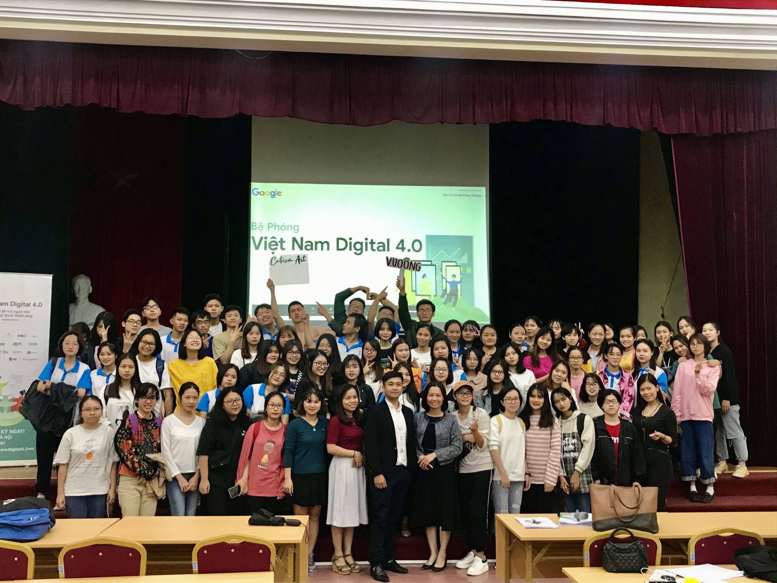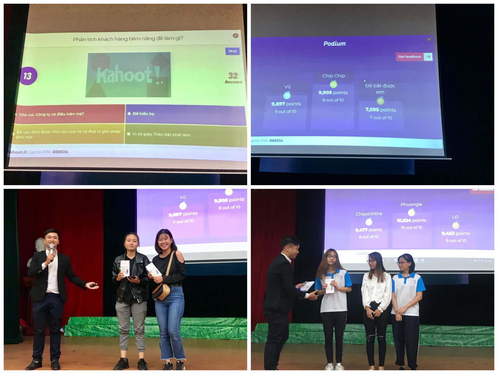 Cuối buổi nói chuyện, sinh viên còn được tham gia trò chơi trực tuyến ngay trong hội trường. Những câu hỏi trong trò chơi liên quan trực tiếp tới nội dung mà báo cáo viên vừa chia sẻ. Rất nhiều sinh viên đã trả lời đúng và nhận được quà của Google Bệ phóng Digital 4.0.