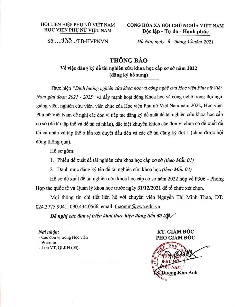 Tin tứcThông báo đăng ký bổ sung đề tài nghiên cứu khoa học năm 2022 Posted on Tháng Mười Hai 10, 2021 by admin(full) 10 Th12 Mời bạn đọc download Phiếu đăng ký đề xuất đề tài NCKH TẠI ĐÂY admin(full) Quyết định cấp học bổng cho sinh viên HKII năm học 2020 – 2021 Thông báo kết quả thi tuyển nhân sự đợt 3 năm 2021