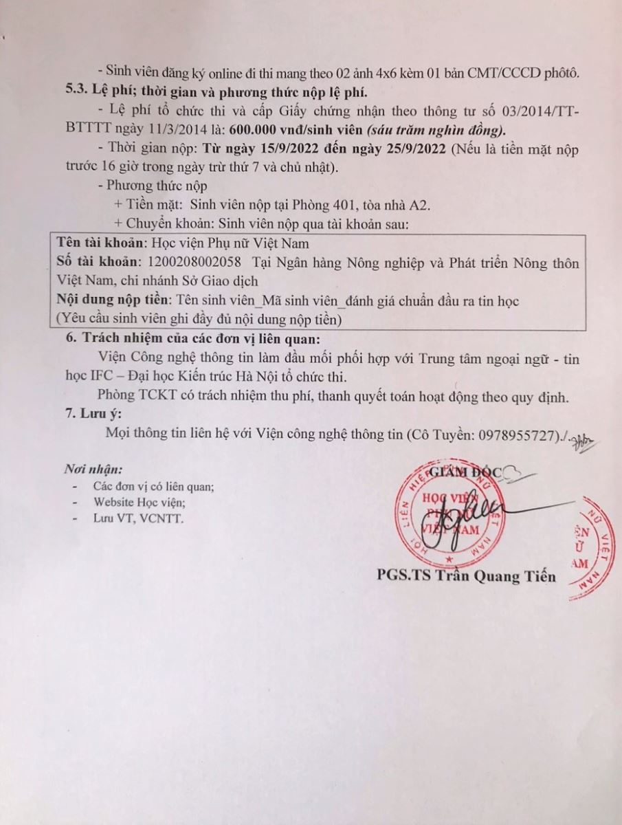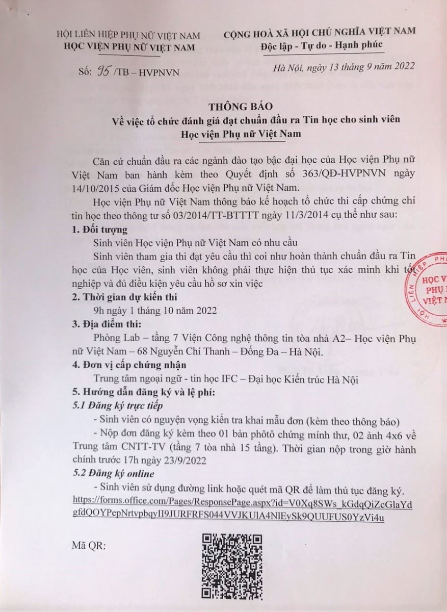 Thông báo đánh giá đạt chuẩn đầu ra Tin học cho sinh viên