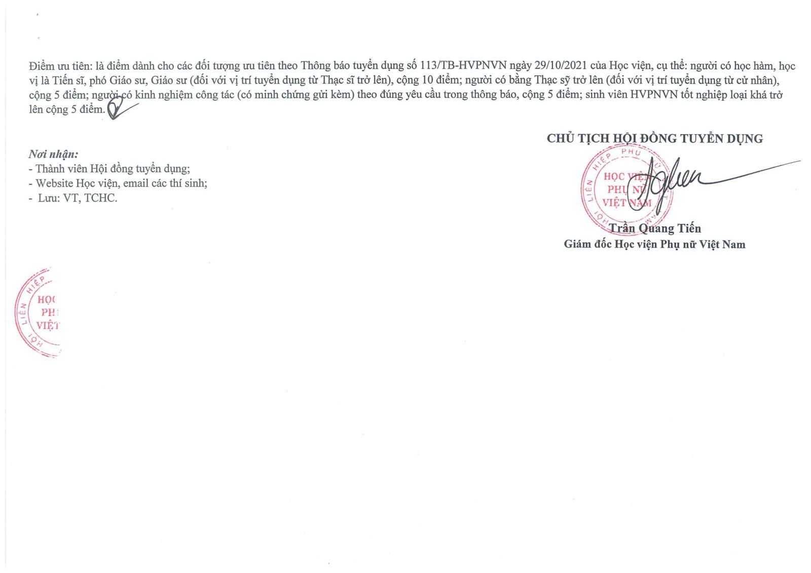 Thông báo kết quả thi tuyển nhân sự đợt 3 năm 2021
