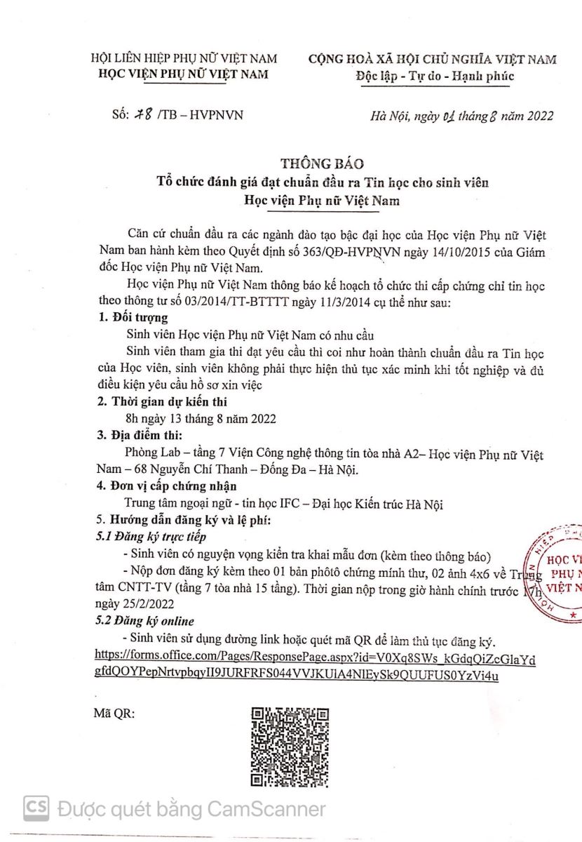 Sinh viên tham gia thi đạt yêu cầu thì coi như hoàn thành chuẩn đầu ra Tin học của Học viên, sinh viên không phải thực hiện thủ tục xác minh khi tốt nghiệp và đủ điều kiện yêu cầu hồ sơ xin việc.
