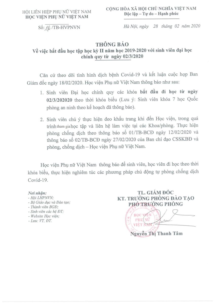 Tin tứcThông báo về việc bắt đầu học tập học kỳ II năm học 2019 – 2020 Posted on Tháng Hai 28, 2020 by admin(full) 28 Th2 admin(full) Thông báo: Sinh viên nghỉ học đến hết ngày 1/3/2020Thông báo thu học phí kỳ 2 năm học 2019 – 2020