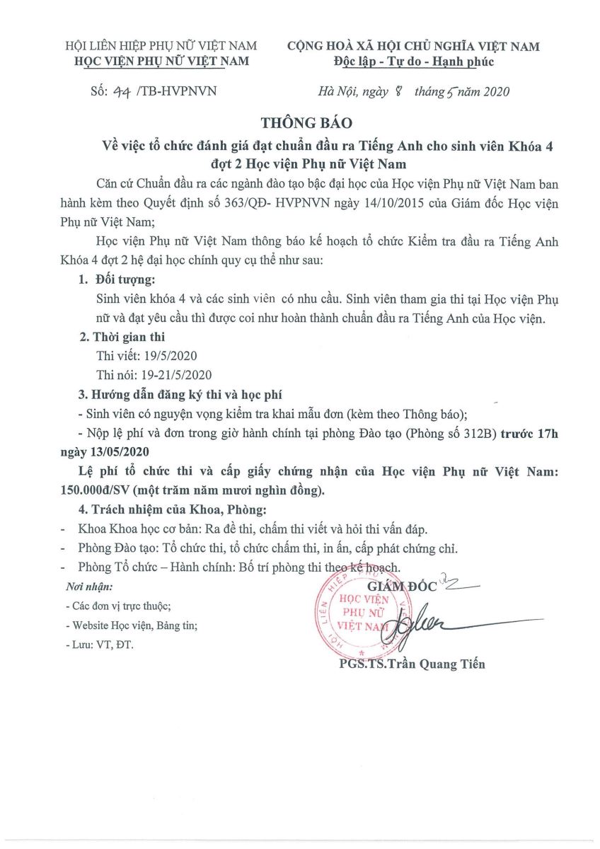 Tin tứcThông báo về việc tổ chức đánh giá đạt chuẩn đầu ra Tiếng Anh cho sinh viên K4 (đợt 2) Posted on Tháng Năm 9, 2020 by admin(full) 09 Th5 MẪU ĐƠN ĐĂNG KÝ THI TIẾNG ANH admin(full) Thông báo về việc học tập trung tại Học viện từ ngày 11/5 Kế hoạch tổ chức thi kết thúc học phần HKII