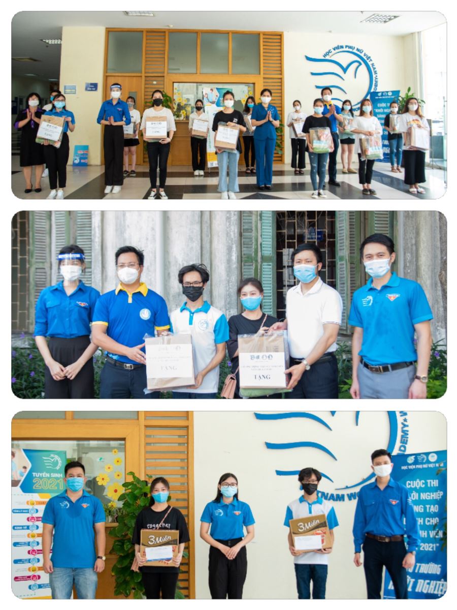Theo khảo sát sơ bộ, Học viện Phụ nữ Việt Nam hiện có 298 sinh viên của Học viện ở trọ tại Hà Nội bị mắc kẹt không thể về quê với rất nhiều khó khăn đang gặp phải đặc biệt là về kinh tế và lương thực, thực phẩm. Ngày 17 tháng 8 năm 2021, tại Học viện Phụ nữ Việt Nam, Lãnh đạo Hội LHPN Việt Nam, Ban Lãnh đạo Thành Đoàn, Hội Sinh viên TP Hà Nội, Đại diện Đảng ủy, Ban Giám đốc Học viện, BCH Đoàn Thanh niên Học viện đã trao tặng hơn 120 suất quà, trị giá 27 triệu đồng cho các bạn sinh viên Học viện đang ở nội trú và ngoại trú.