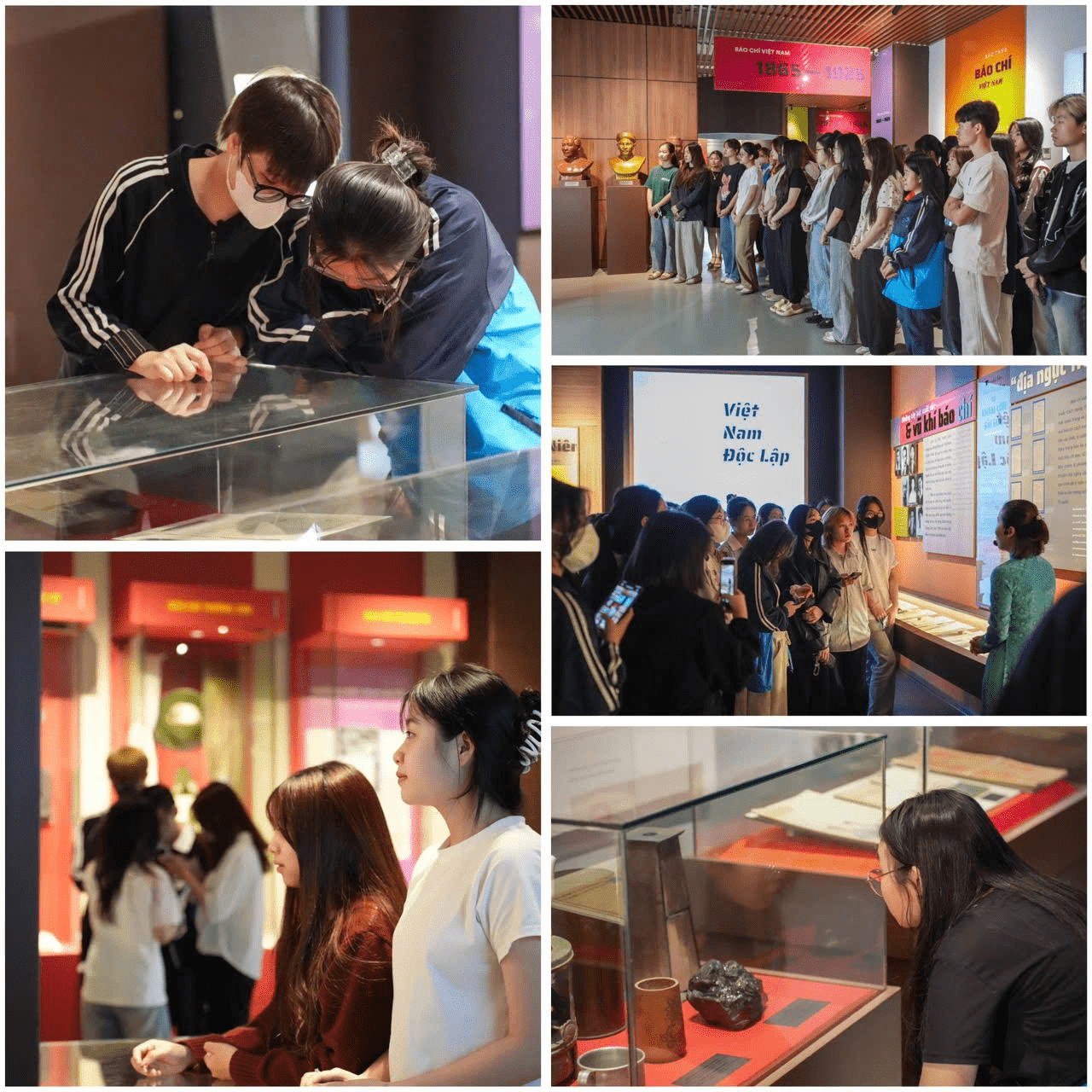 Bảo tàng Báo chí Việt Nam tọa lạc tại số lô E2 Dương Đình Nghệ, Cầu Giấy, Hà Nội, là nơi lưu giữ hàng chục nghìn hiện vật, hình ảnh và tài liệu quý giá về báo chí Việt Nam từ cuối thế kỷ XIX đến nay. Ngay khi bước chân vào không gian triển lãm, sinh viên đã bị cuốn hút bởi cách sắp đặt khoa học và sinh động. Các hiện vật được trình bày theo dòng thời gian, từ những bản tin đầu tiên như tờ Gia Định Báo, tờ Thanh niên của Nguyễn Ái Quốc, đến các tờ báo kháng chiến, báo chí thời kỳ đổi mới và báo điện tử trong thời đại số.