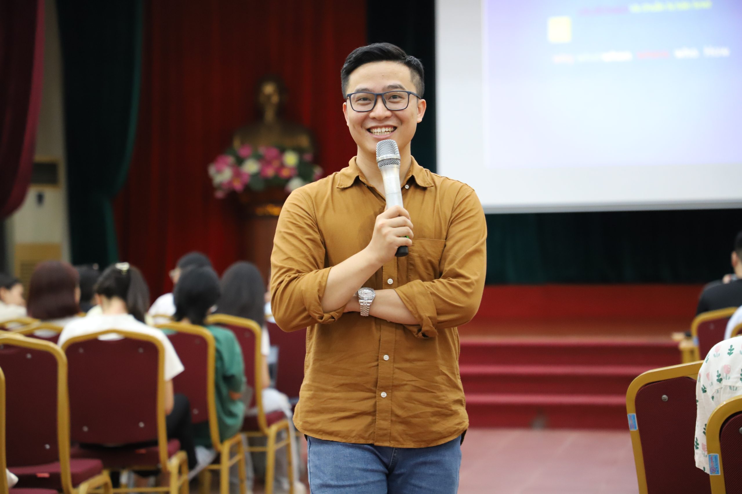 Diễn giả Ths. Nguyễn Quang Trường tại buổi chia sẻ với hơn 200 sinh viên K11 TTĐPT